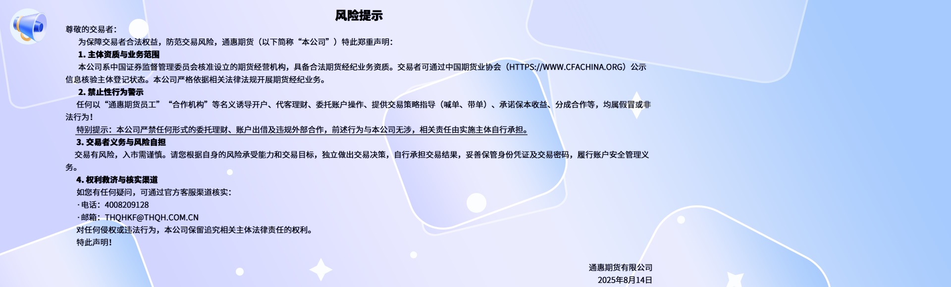 地址:上海市浦東新區(qū)陸家嘴西路99號萬向大廈10樓 郵編:200120 電話:021-68866986 傳真:021-68866985 滬公網(wǎng)安備 31011502007726號 滬ICP備17047738號 Copyright?2013 通惠期貨有限公司 All Rights Reserved